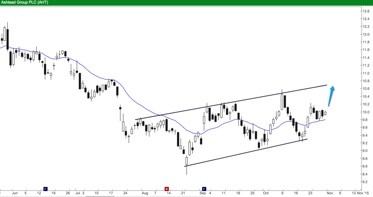 We remain in Ashtead Group PLC with a target shown by the blue arrow below.