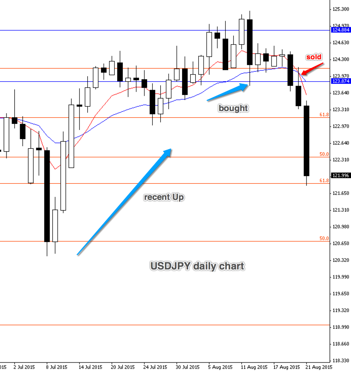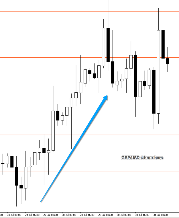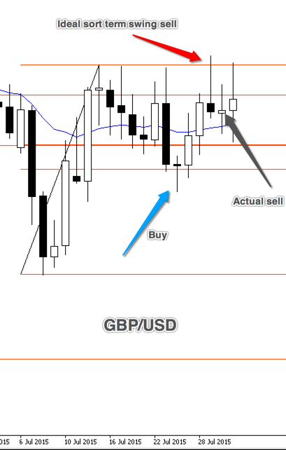 USDJPY above, was this sell instinct? I bought USDJPY on a retrace, from a recent Up, on the one hour chart (chart above is the daily chart to show the week). I was looking for a 3R with this one and we sat at 1R all week. I noticed the move down (unexpected strengthening of JPY) and sold with a small profit of £115 (all week the profit had been £600).